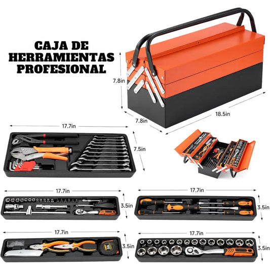 CAJA HERRAMIENTAS 85 PIEZAS 3 NIVELES - FULL EQUIPADA, PLEGABLE Y REFORZADA🛠 + GUÍA DOMINANDO EL USO DE HERRAMIENTAS EN CASA, AUTOMÓVILES Y TALLERES (GRATIS)