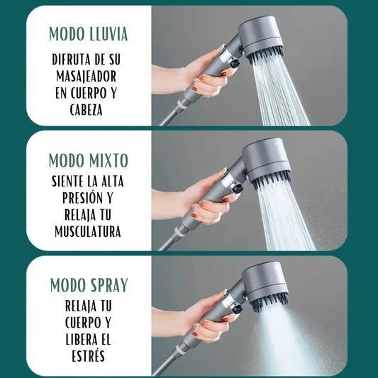 Cabezal Masajeador de Alta Presión - 4 Modos de riego + Botón Stop para Ahorro de Agua y Filtro Incluido